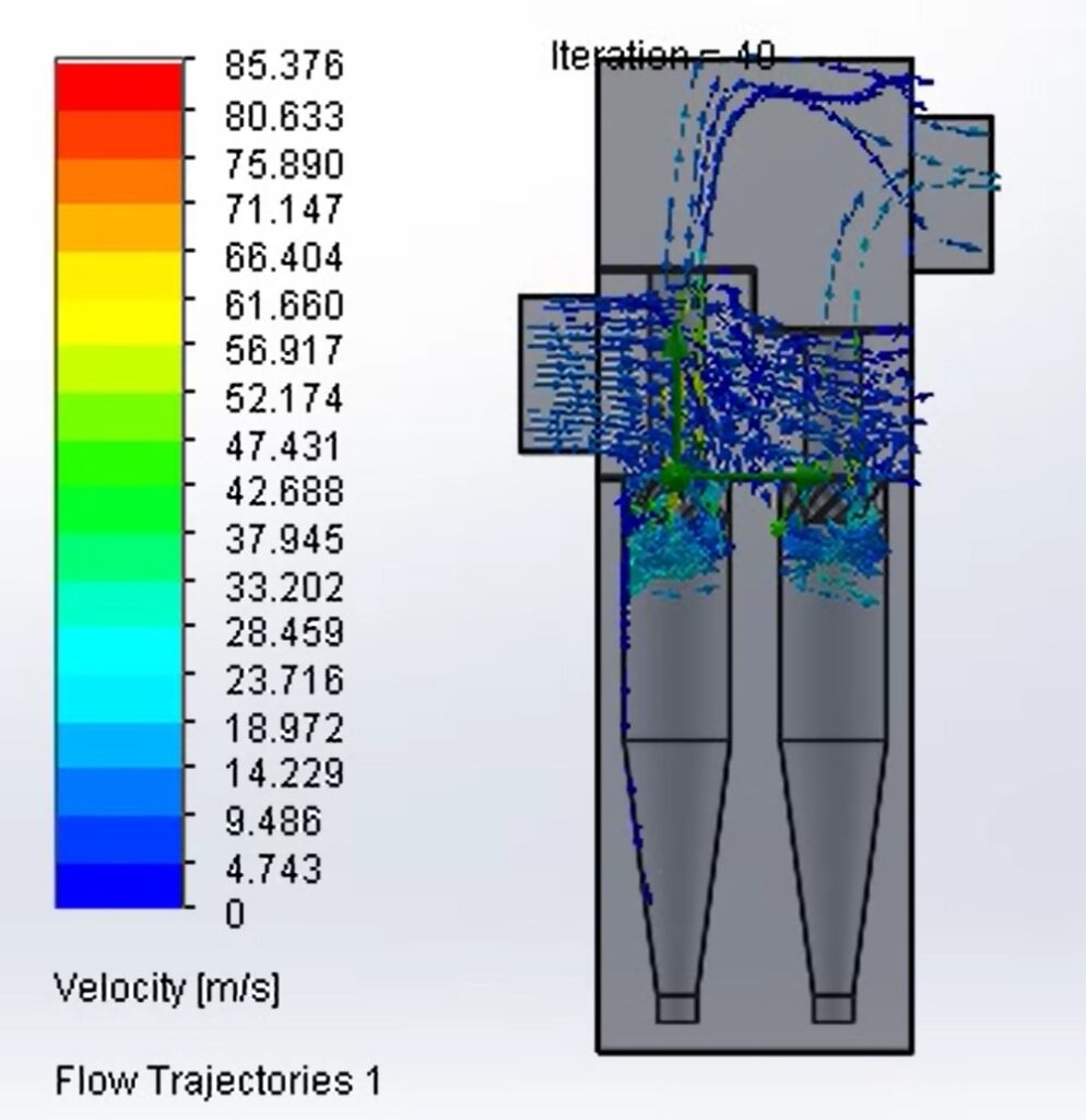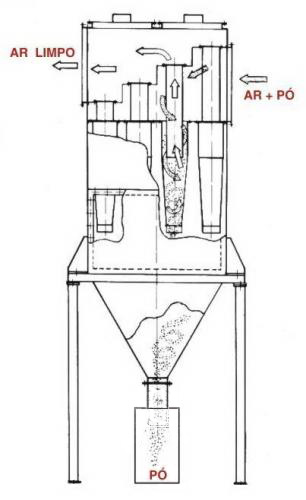 A força centrífuga criada pelos ciclones e multiciclones faz com que as partículas se choquem contra as paredes do equipamento, isto provoca redução na sua velocidade e queda das mesmas pelo cone inferior do equipamento enquanto o ar limpo sai pela parte superior.