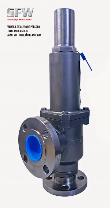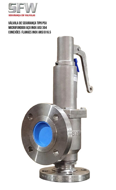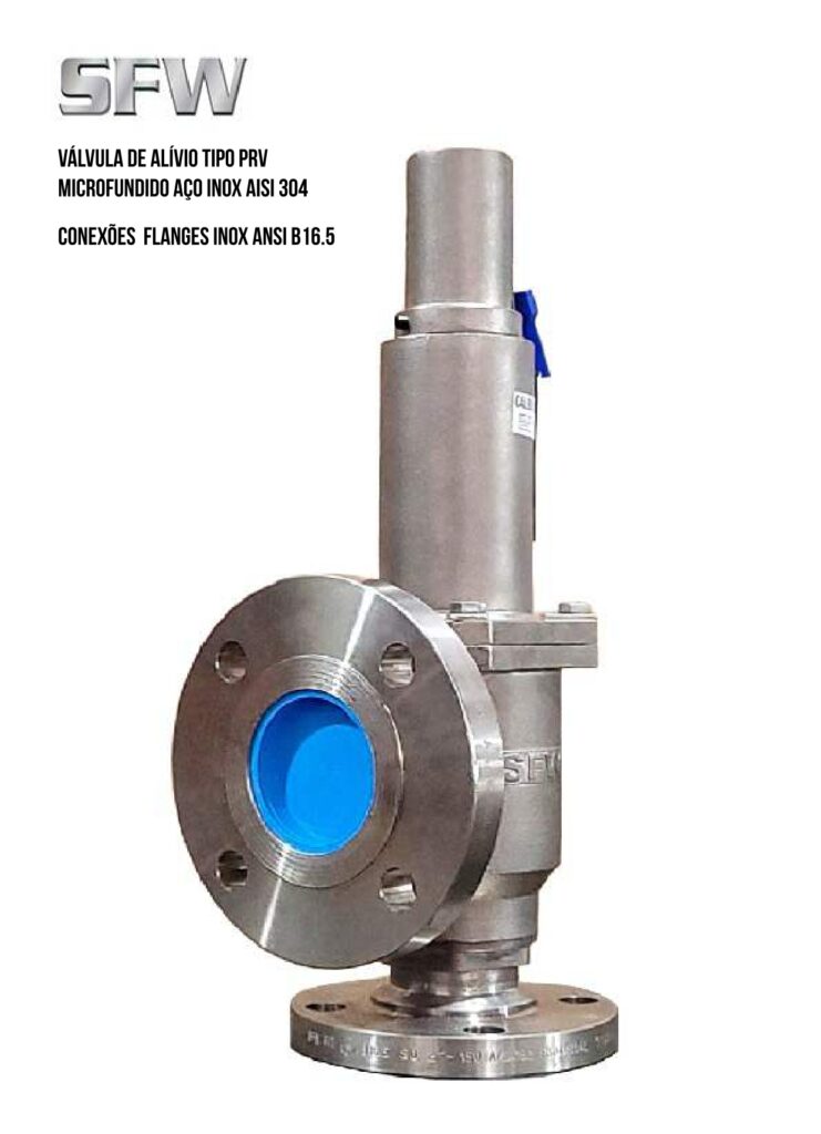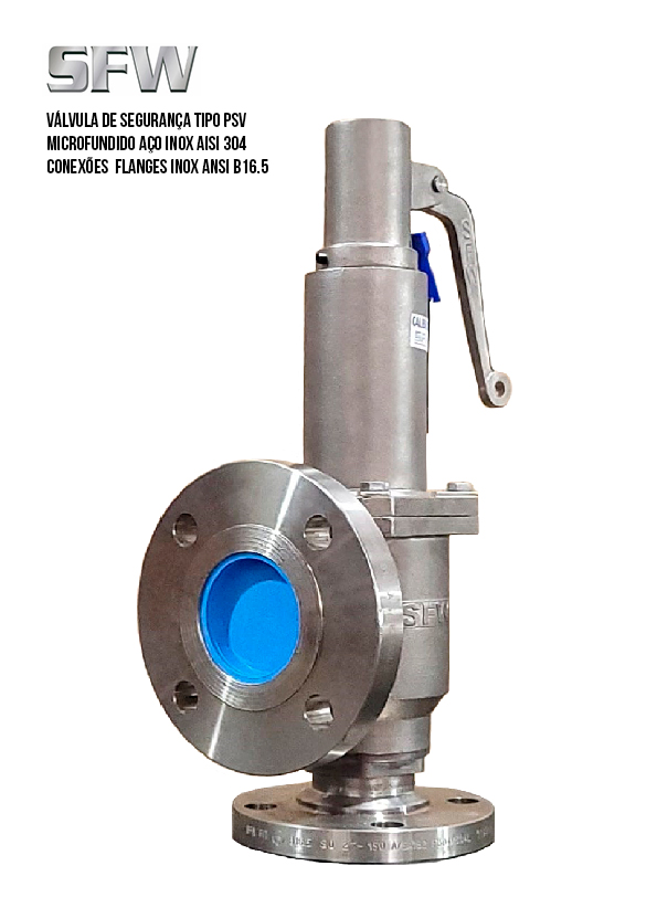 A linha de válvulas SFW tipo PSV (Pressure Safety Valve) e PRV (Pressure Relief Valve) são especialmente fabricadas em material total Inox AISI 304 por processo de microfusão para garantir a qualidade e proteção de todos os seus componentes contra pressão excessiva e atendem aos rígidos requisitos de qualidade e segurança.