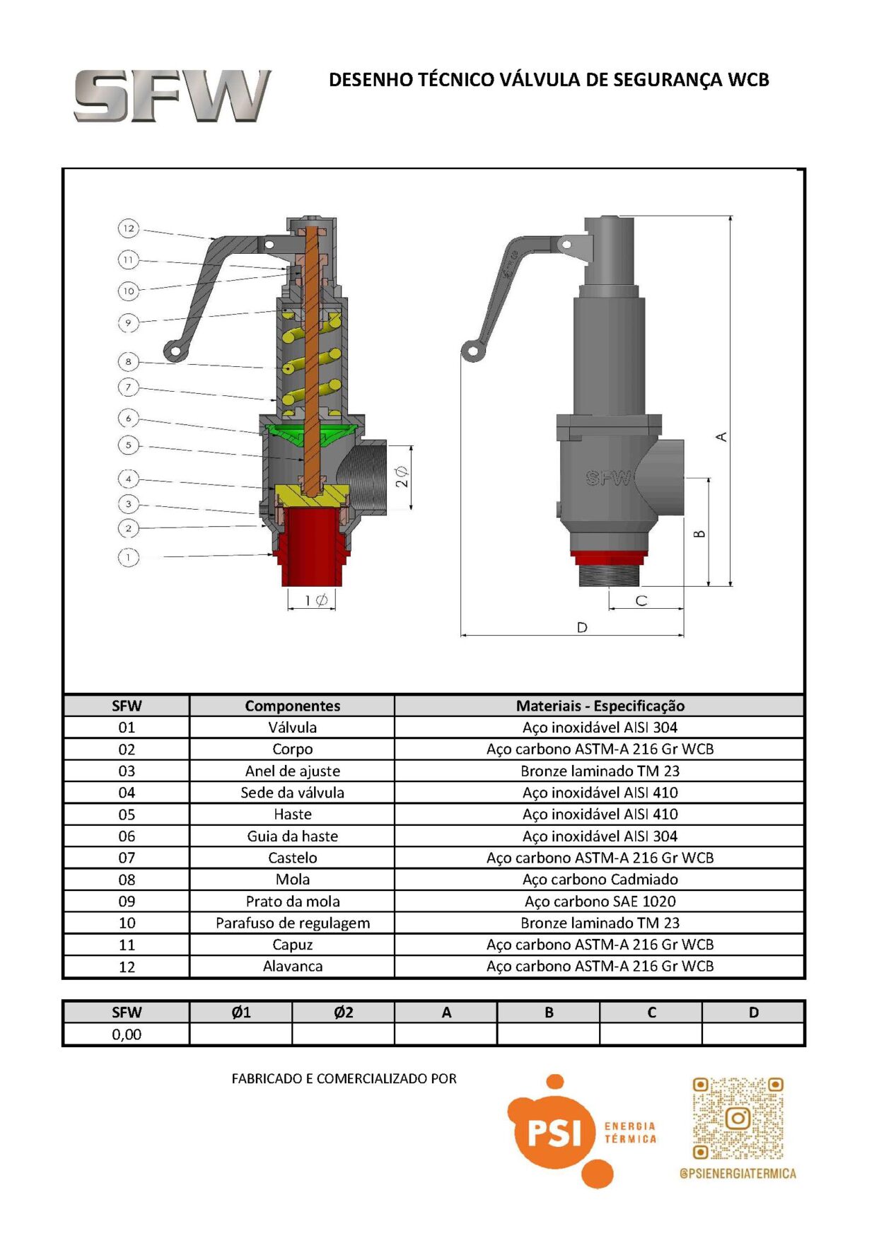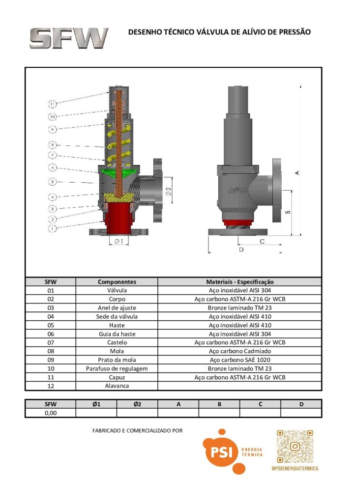 A linha de válvulas SFW tipo PSV (Pressure Safety Valve) e PRV (Pressure Relief Valve) são especialmente fabricadas em material WCB 216 por processo de microfusão para garantir a qualidade e proteção de todos os seus componentes contra pressão excessiva e atendem aos rígidos requisitos de qualidade e segurança.